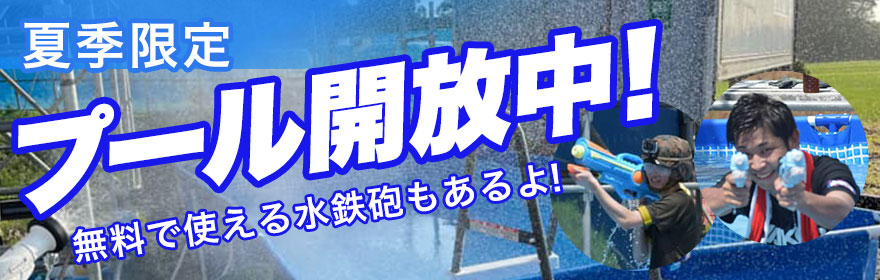 夏季限定、プール実施中!水鉄砲レンタルあり(無料)