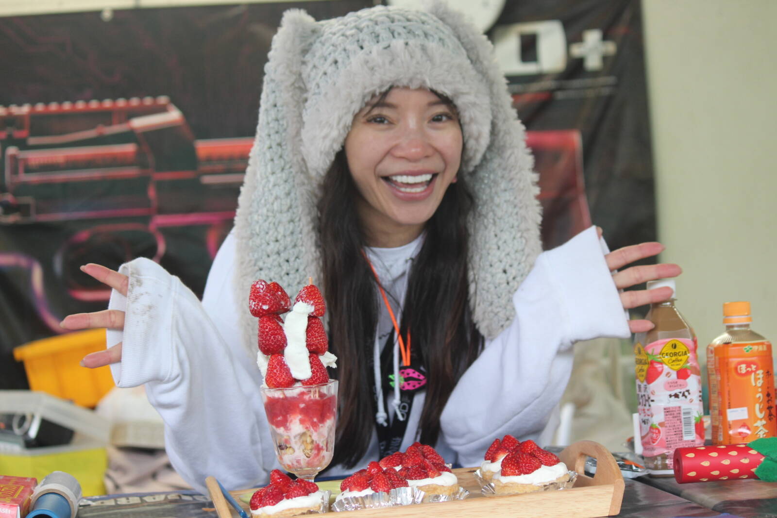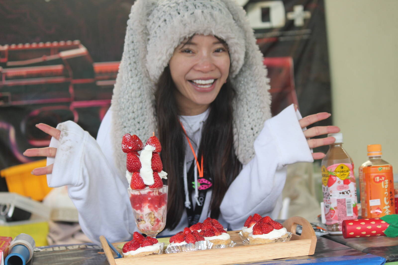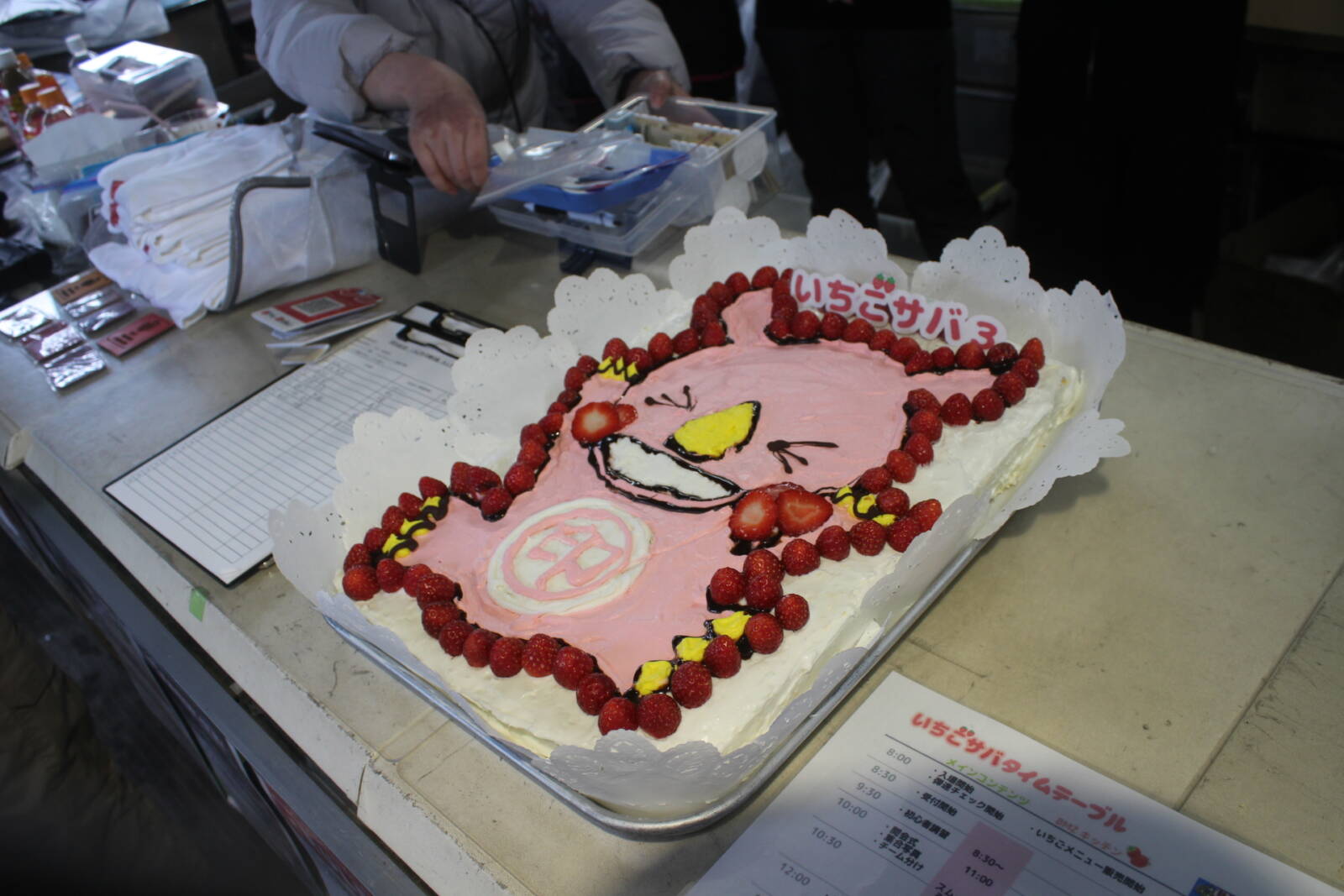 3月16日 いちごサバ 写真 本日はいちごサバにご来場ありがとうございました! 雨の中でしたが、いちごメニュー全て完売!!!!!! ありがとうございます! また来年、今度こそは晴れの中開催したいと思いますので、また来年もぜひ遊びに来てください!