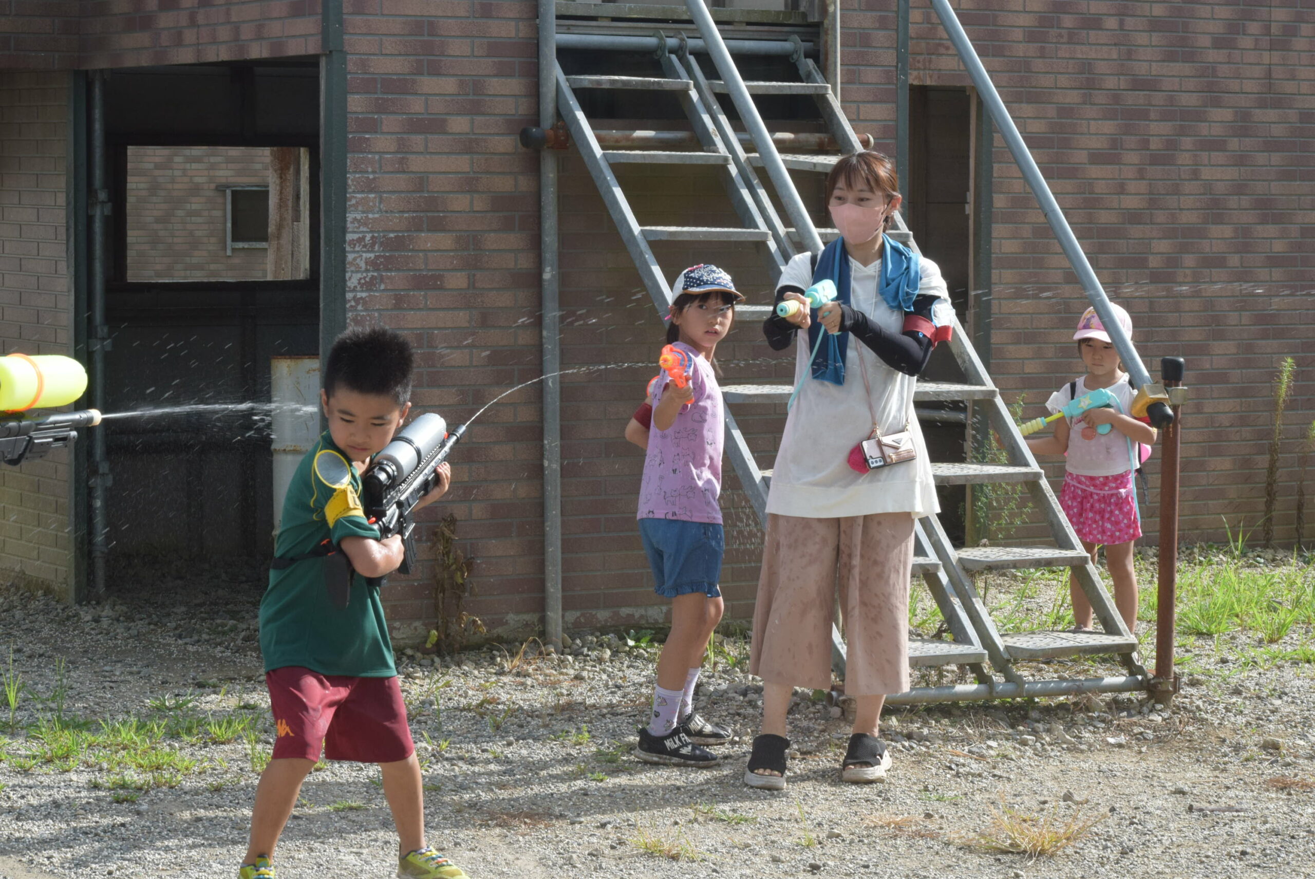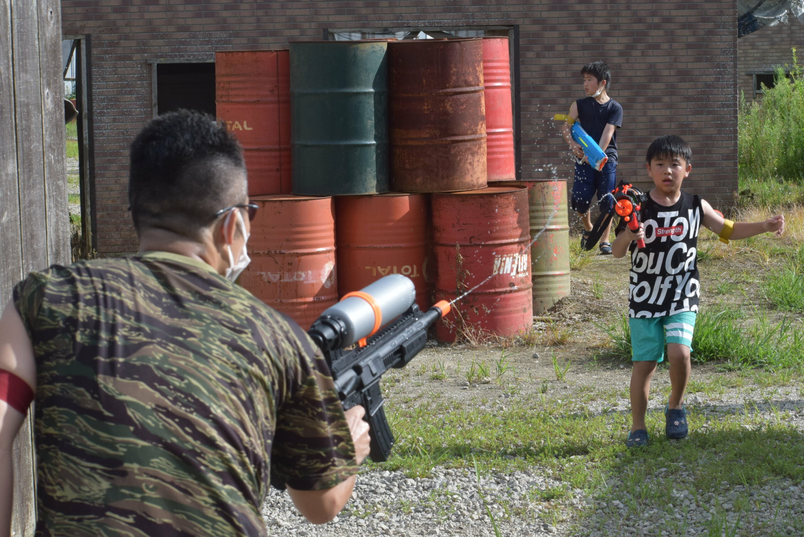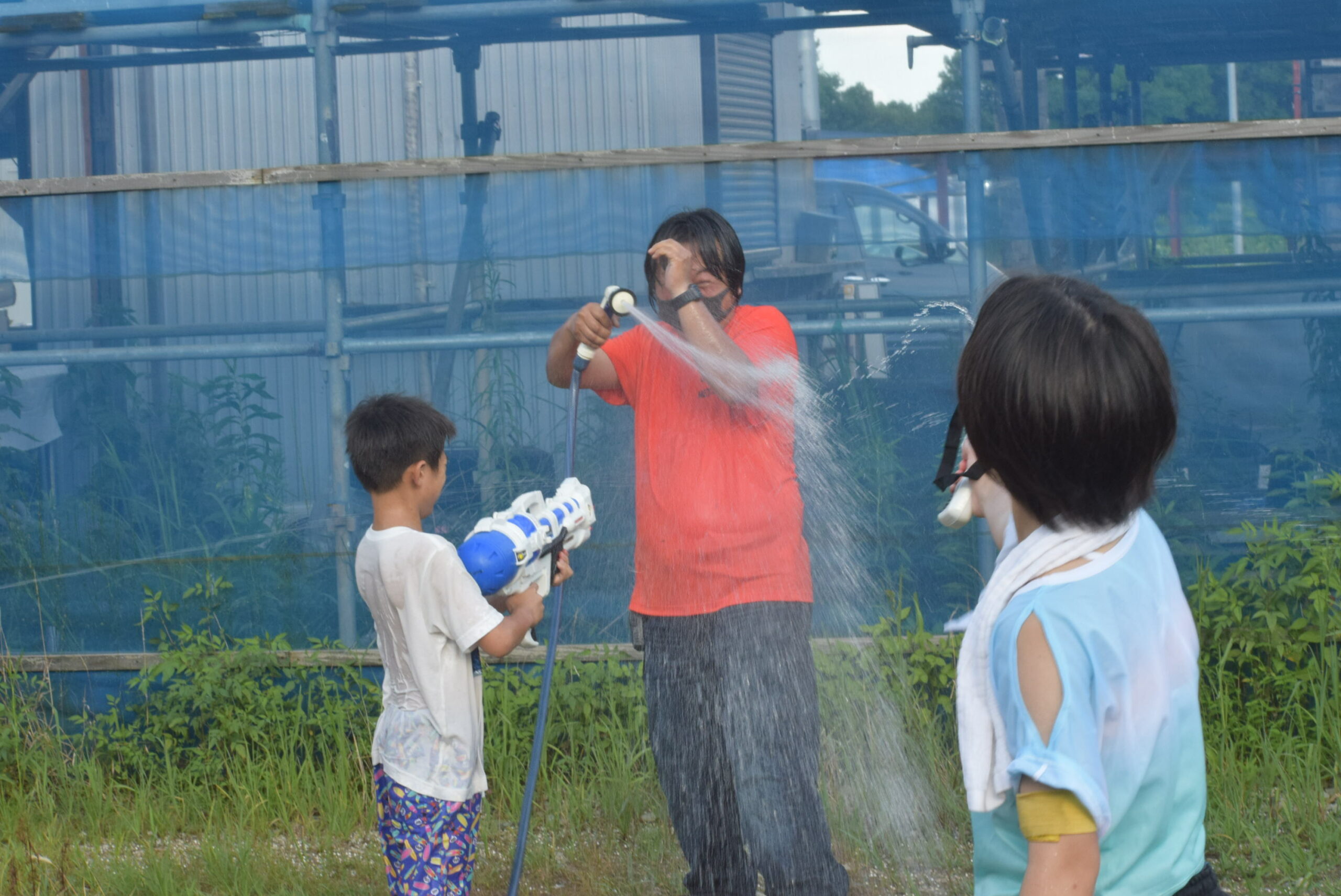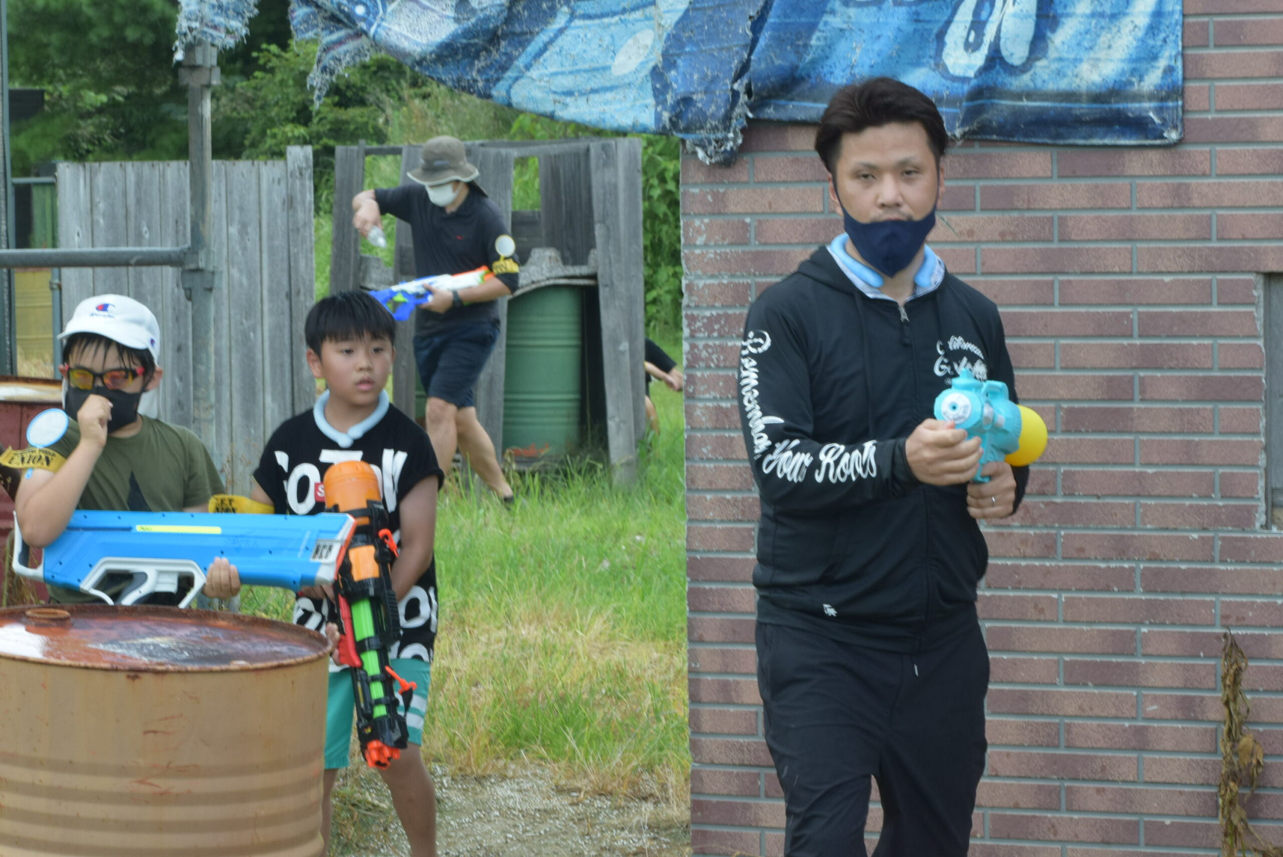 スタッフ、関係者を含めて100名様近くのみんなでウォーターガンで遊ぶことができました!!