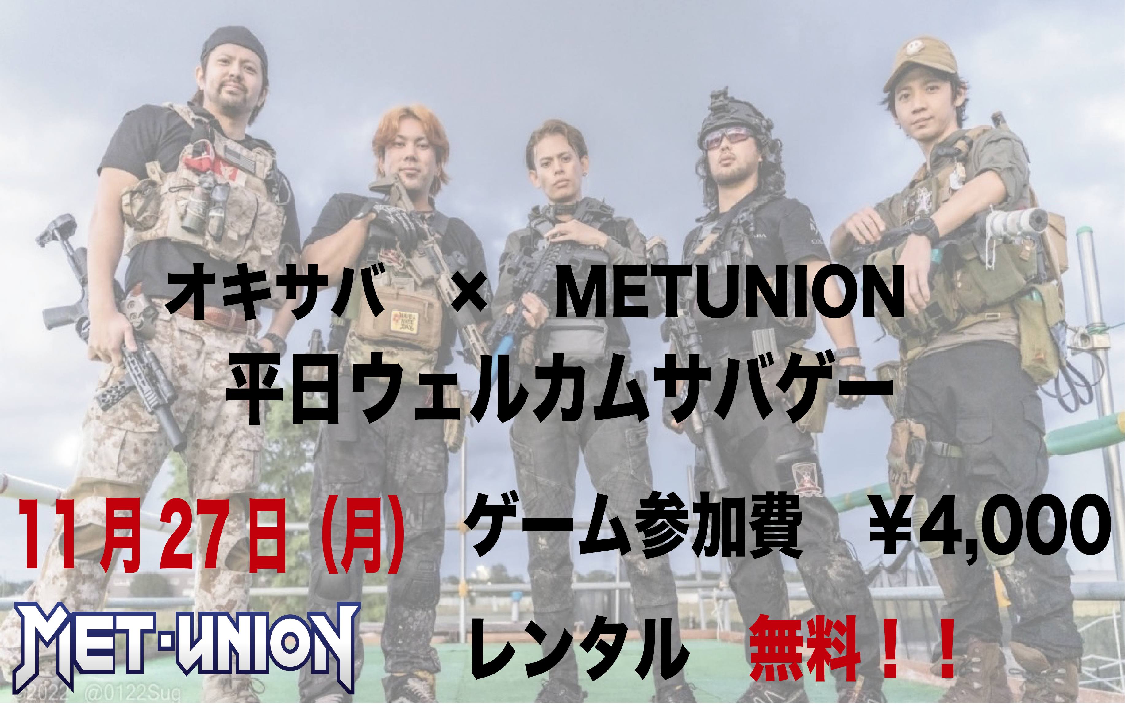 そこで今回「オキサバ × METユニオン 平日ウェルカムサバゲー」を開催することになりました!