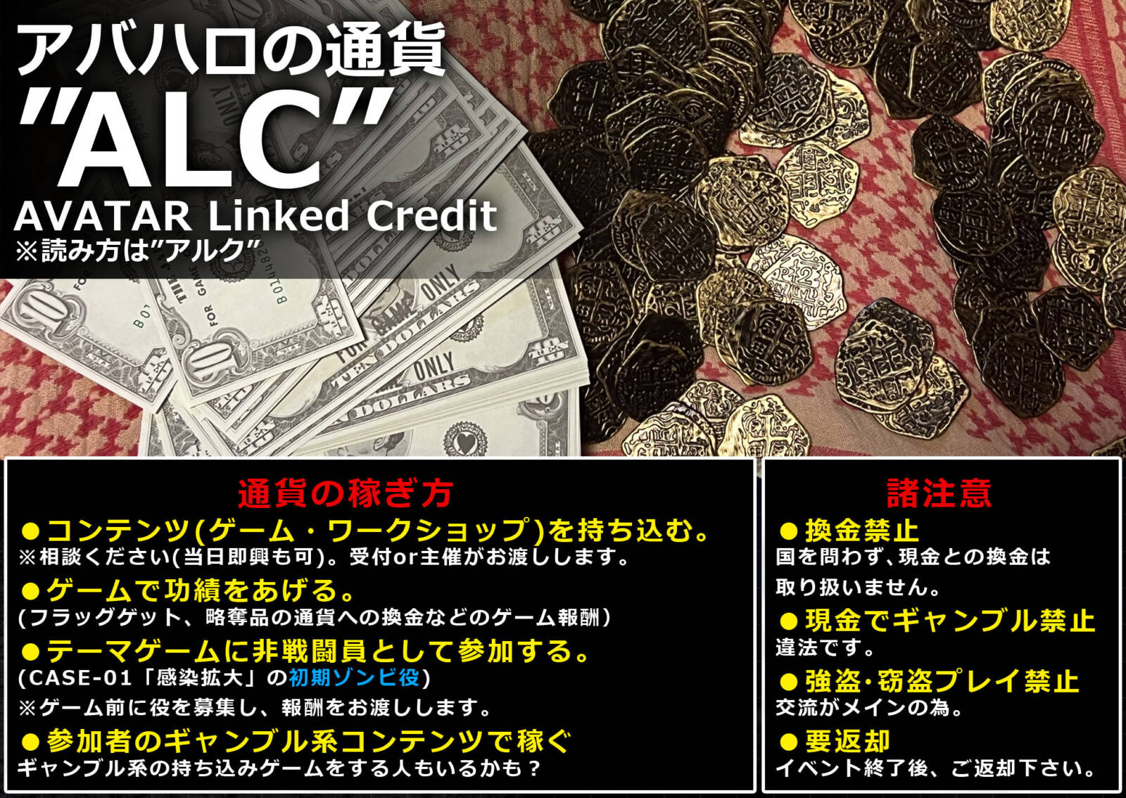 アバハロでは、イベント内通貨「ALC」が流通しています!