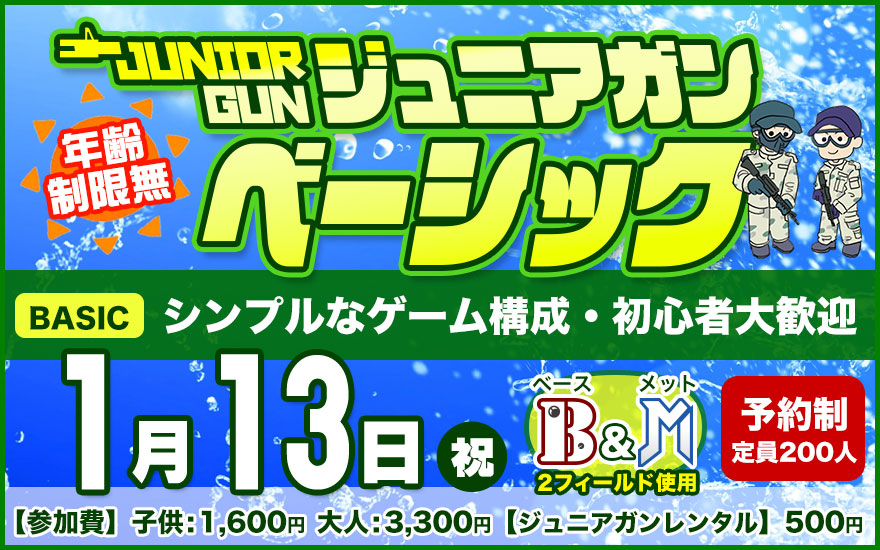 千葉でサバゲーをするなら ユニオンベース > イベント情報 > 開催予定の定例会・イベント > ジュニアガン定例会 > ジュニアガン