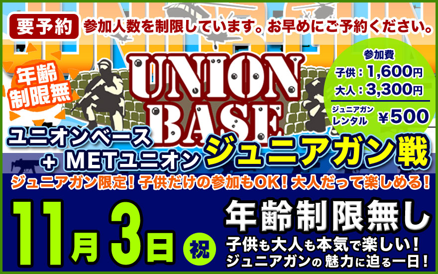 サバイバルゲームフィールド「ユニオンベース」定例会のレギュレーションなど、詳しい情報はこちらでご確認ください