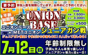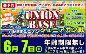 6月13日 ユニオンベース × METユニオン合同定例会 2つの巨大フィールドで2つのゲームが同時進行!! 1日の楽しみ方はあなた次第!!! 初心者の方も安心して楽しめるイベントです!! ぜひ遊びにきてくださいね!! 2020/6/5 詳細を見る