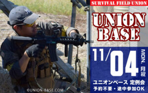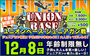 ユニオンベースでは、 子供たちにも安心して参加できる企画としてジュニアガン戦を開催しています。 通常より威力の弱いボーイズ銃(対象年齢10歳以上)を使ったサバイバルゲーム会です。 威力が弱いとはいえ、本格的なサバゲーフィ […]