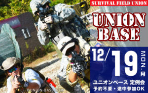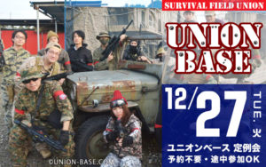 明日はベース月曜定例会開催です!!!! 天気は晴れ!! 気温も暖かくてゲーム日和になりそうですね! そろそろ年内撃ち納めの方も多いかと思います、撃ち納めはユニオンベースで楽しくサバゲしましょう!!!!