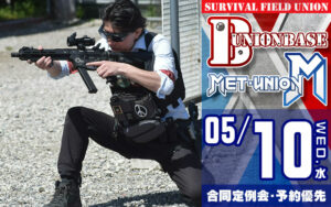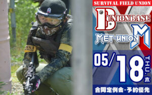 平日合同定例会 ユニオンベース × METユニオン合同定例会 1日で2つの異なるフィールドを楽しめるお得なイベントです。 ユニオンベースとMETユニオンで交互にゲームを進行します! ビギナーズパック サバゲー初心者の方も安心して参加して […] 2023/5/2 詳細を見る