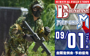 合同定例会 ユニオンベース × METユニオン合同定例会 1日で2つの異なるフィールドを楽しめるお得なイベントです。 サバゲー初心者の方も安心して参加して頂ける、レンタル一式とビギナー講習付きの「ビギナーズサービスパック」がありエア […] 2022/8/24 詳細を見る