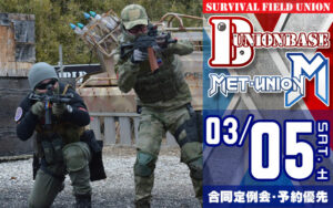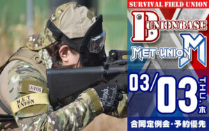 合同定例会 ユニオンベース × METユニオン合同定例会 1日で2つの異なるフィールドを楽しめるお得なイベントです。 サバゲー初心者の方も安心して参加して頂ける、レンタル一式とビギナー講習付きの「ビギナーズサービスパック」がありエア […] 2022/2/23 詳細を見る