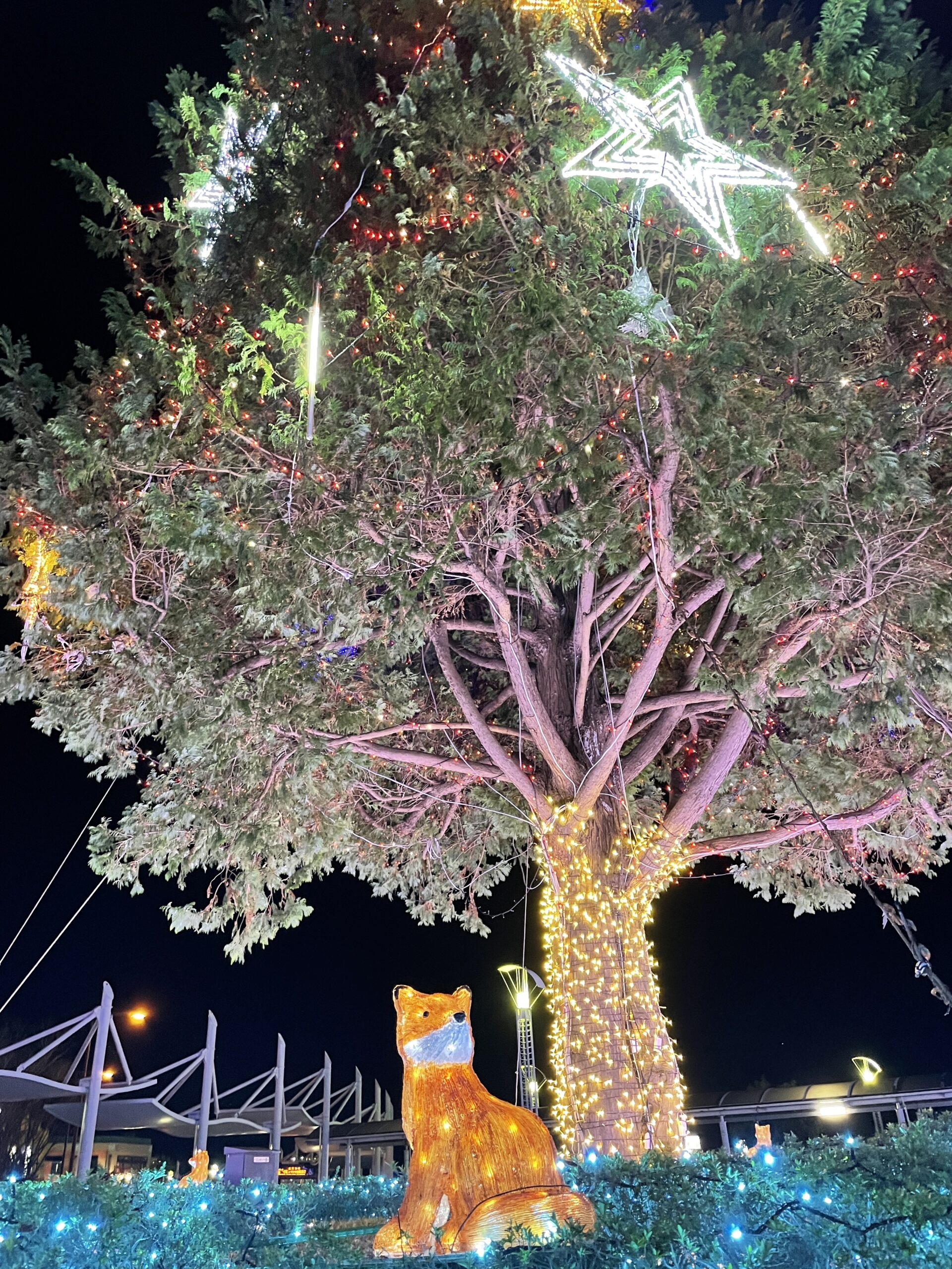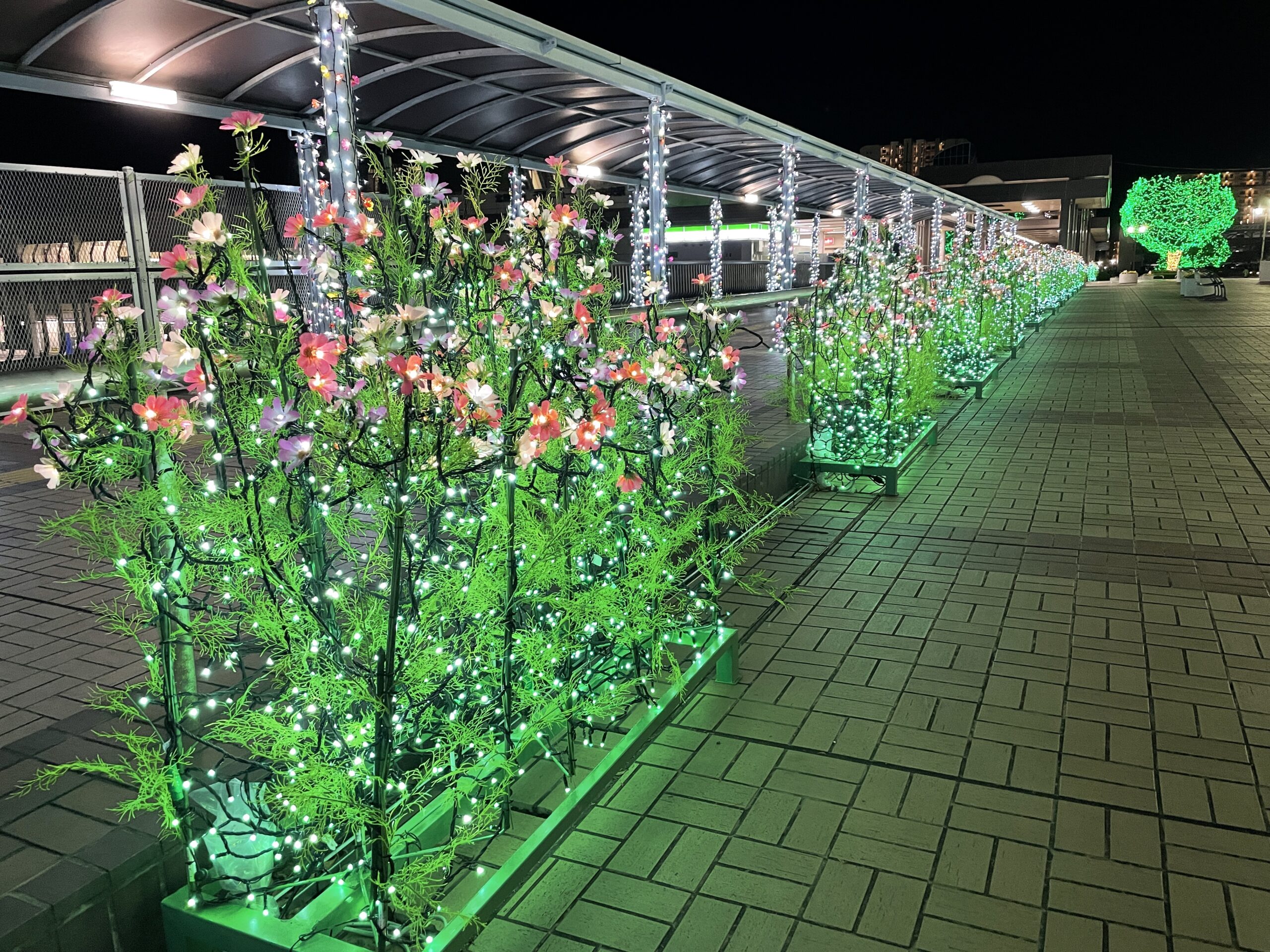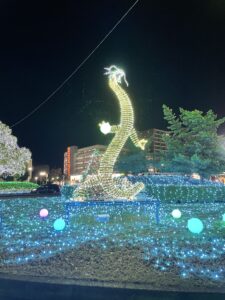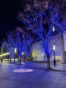 北口エリアは並木がたくさんライトアップされており、プロジェクションマッピングも1時間おきに表れるそうです。